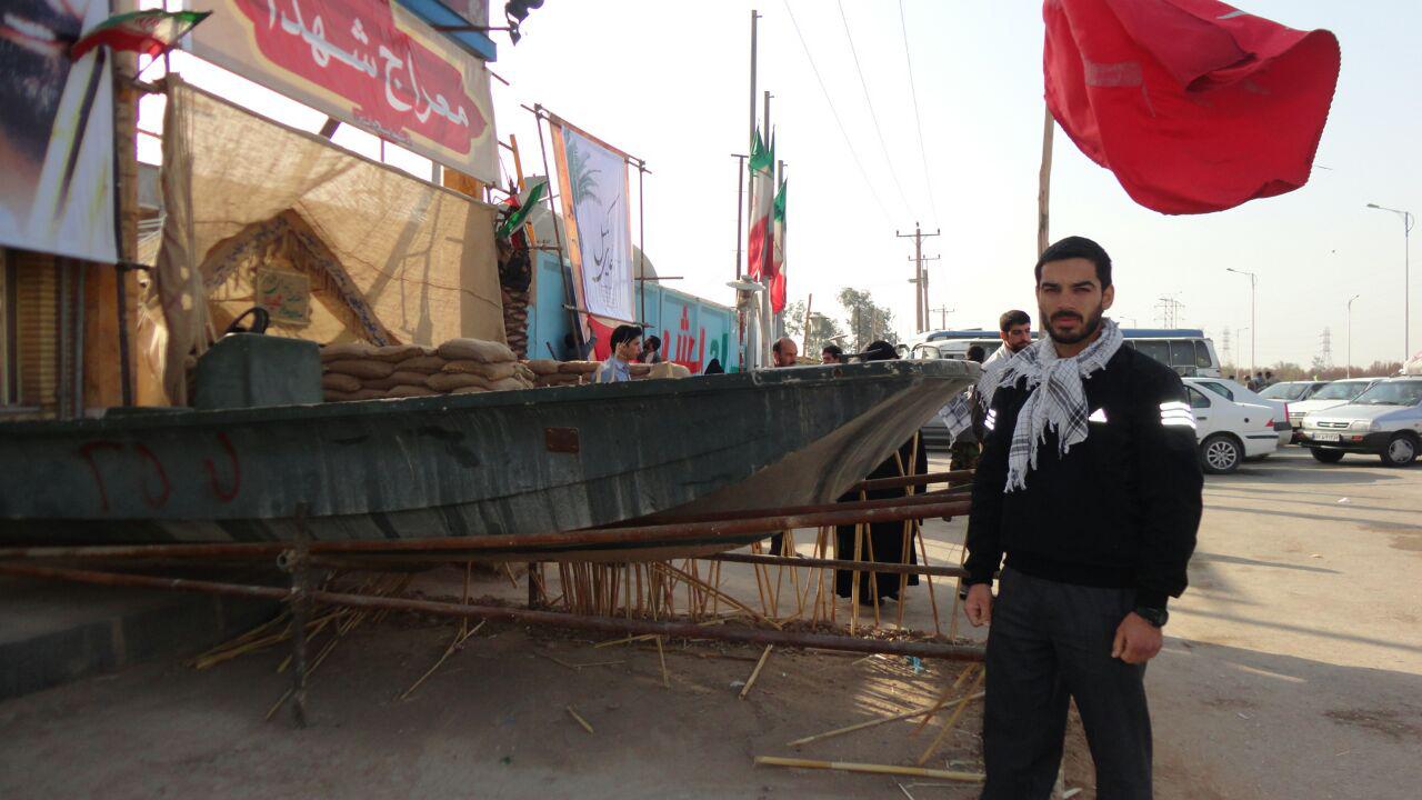 نگاهش که میکردم انگار در حین پایین بودن سرش داشت به یک چیزی فکر میکرد.احساس میکردم از شهدا کمک میخواهد برای یاری کردنش در راهشان... نوبت به معراج الشهدا رسید.وارد که شدیم اسفند برای ورود زائر ها دود کرده بودند.کمی که جلو رفتیم شربت آبلیمو صلواتی میدادند. آقا ابوالفضل گفت : بیا اینجا شربت شهادت میدهند برویم بگیریم .از روی مزاح گفتم : نخوری، اگه بخوری شهید میشوی.گفت : تازه برای تو هم میخواهم بگیرم.دوربین دستم بود.و از مناطق جنوب عکس یادگاری میگرفتم.آنجا هم سریع در حالی که داشت لیوان های شربت را برمیداشت که بیاورد و دوتایی بخوریم ازش عکس گرفتم.بعد از اینکه شربت خوردیم دوربین دادم به آقا ابوالفضل و از هم جدا شدیم.