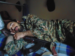 آقا ابوالفضل 11 اسفند ماه به سوریه رفت و تحویل سال با من تماس گرفت، در ایام عید که به من زنگ می زد از او پرسیدم : شما هم آنجا عید دیدنی رفتید که گفت : بله کلی هم از داعشی ها پذیرایی کردیم، سه روز قبل از شهادتش نیز با من تماس گرفت و به او گفتم : دلم برایت تنگ شده و آقا ابوالفضل با مهربانی پاسخ داد که خانم تو در قدم هایی که من برمی دارم شریک هستی من جواب دادم که نمی توانی این بار به جای 45 روز 40 روز بمانی و زود برگردی که گفت : امکانش نیست اینجا کار زیاد است. فرودین ماه 1395 بر اثر ترکش خمپاره در العیس جنوب غرب حلب به فیض شهادت نائل آمد.
